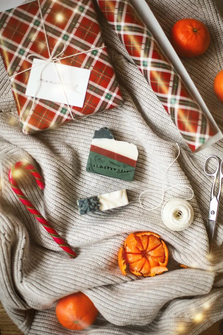 Wunderschöne festliche Farben und ein warmer Duft voller Weihnachtsgewürze, Nadelholz und roten Beeren, durchzogen von Noten von Amber und Moschus, zaubern eine unwiderstehliche Weihnachtsatmosphäre in Ihre Badezimmer und Herzen. Handgemachte Seife schafft eine festliche Atmosphäre und wärmt Sie am ganzen Körper. Perfekt als kleines Weihnachtsgeschenk oder duftendes Vergnügen für sich selbst. Pflegt die Haut sanft, hinterlässt sie sauber und hydratisiert. Gönnen Sie sich in der Dusche eine warme Atmosphäre, auch an kalten Tagen. Machen Sie sich eine Freude mit der Seife Merry Christmas, die gleichzeitig ein großartiges stilvolles Geschenk für Ihre Lieben sein wird.