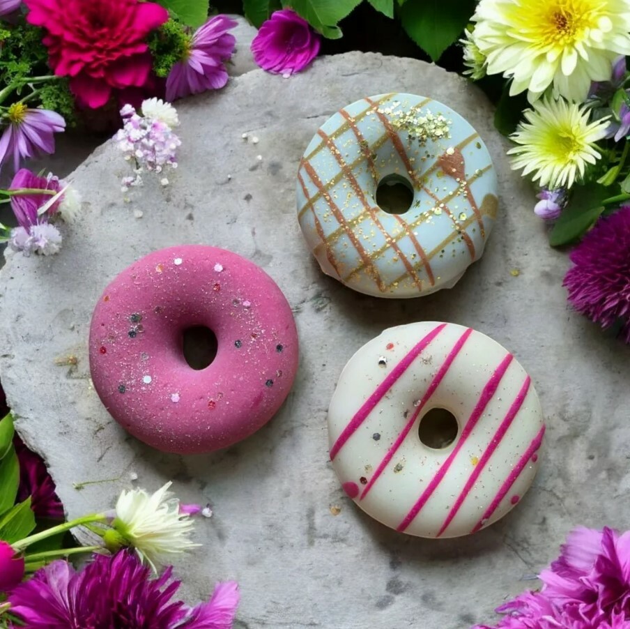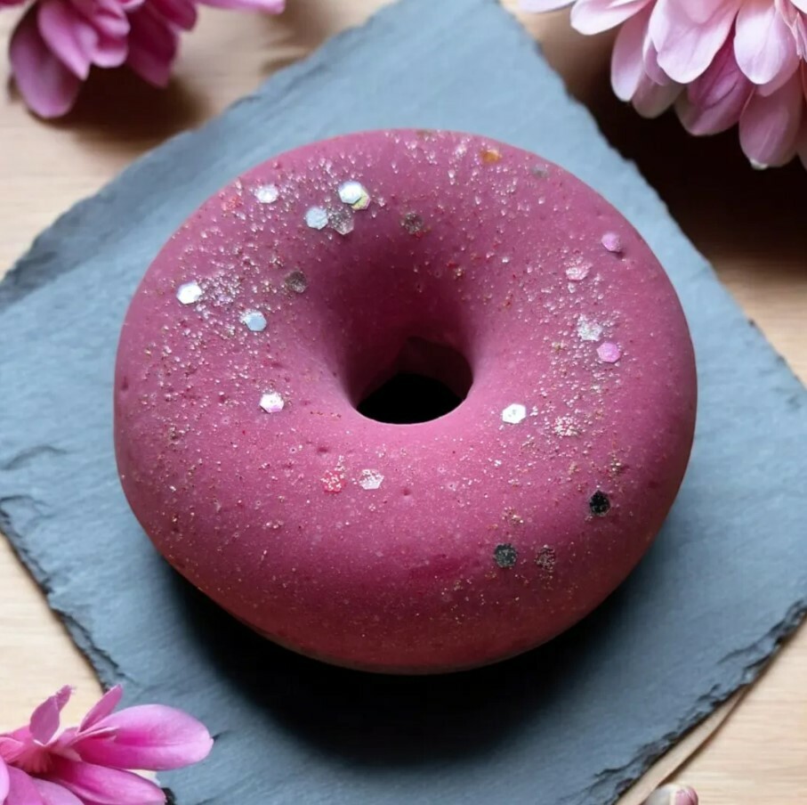 Aussehen: Die Seife hat die realistische Form eines Donuts mit einem wunderschönen rosa-weißen Zuckerguss, der an echte Zuckerleckereien erinnert.