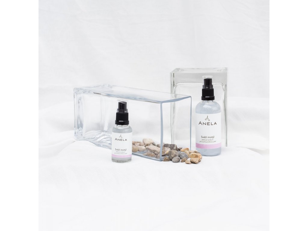 Ein zusätzlicher Schritt: Wenn Sie Ihre Haut bereits mit einer Kombination aus Odlíčím und Očistím tvář abschminken und reinigen, dann empfehlen wir, das Maximum an Wirkstoffen zu nutzen, indem Sie auf die perfekt gereinigte Haut Svěžího motýla aufsprühen, sanft mit den Fingern einklopfen und auf die noch feuchte Haut weitere Pflege auftragen.