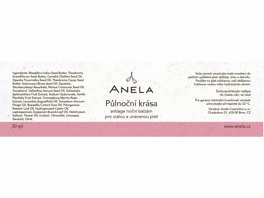 Mitternachtsschönheit enthält jetzt Bakuchiol und die Hyaluronsäure wurde durch eine hochwertigere Variante tschechischen Ursprungs ersetzt. Durch die Verringerung der Konzentration ätherischer Öle wurde das Risiko von Reizungen minimiert. Das neue Herstellungsverfahren sorgt für eine luftigere, feinere und cremigere Textur ohne Klumpenbildung bei allen Varianten der Mitternachtsschönheit.