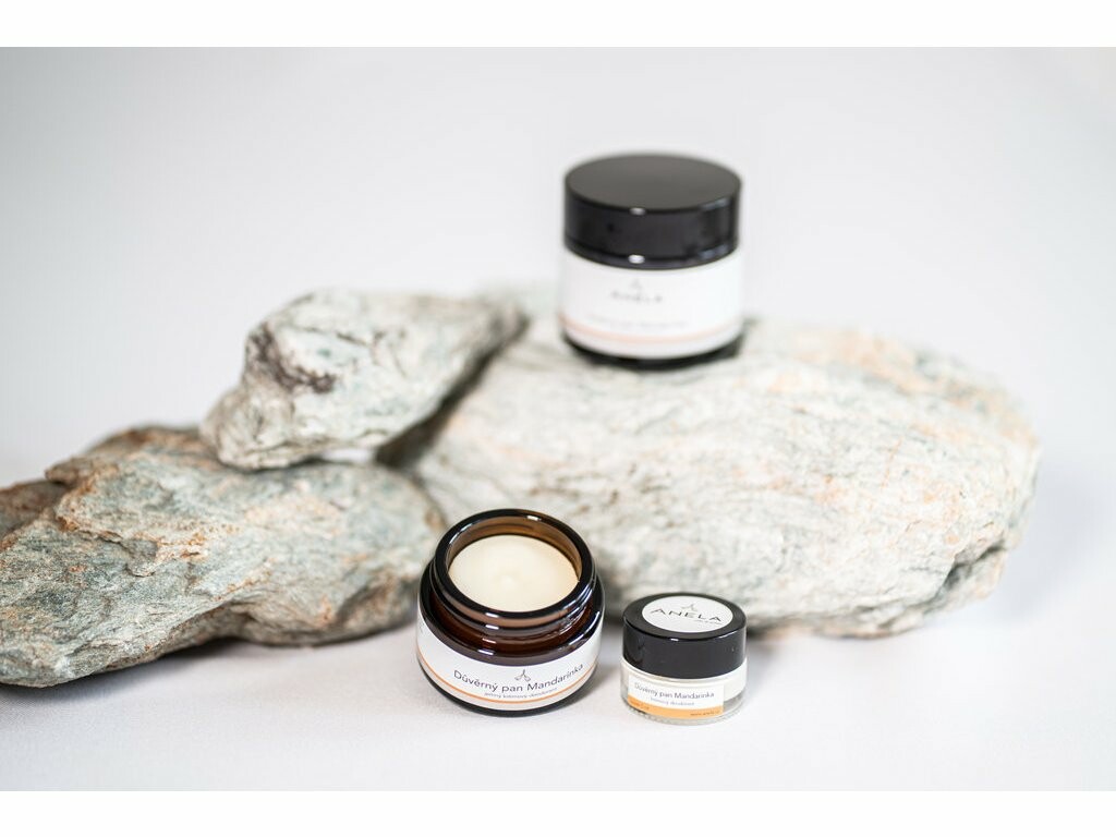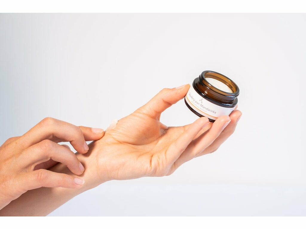 Die Grundlage der Důvěrní pánové ist ein sehr fein gemahlenes Pulver aus Natron, kombiniert mit Pfeilwurzstärke, Triethylcitrat, Kokosöl und Sheabutter. Diese Zutaten ergeben zusammen eine feine und glatte Creme, die Sie leicht mit den Fingern in die Achselhöhlen auftragen können. Soda, Kokosöl und Triethylcitrat verhindern die Aktivität von Bakterien im Schweiß und reduzieren so unangenehmen Geruch. Stärke absorbiert effektiv Feuchtigkeit und hält die Achseln trocken. Bio-Sheabutter und ausgewählte Trockenöle pflegen die Achselhaut sanft ohne fettiges Gefühl. Frische Zitrusfrüchte pflegen sanft Ihre Haut, reduzieren eventuelle Entzündungen und beleben zudem Ihren Geist und Ihre Stimmung. Bei Herrn Mandarine achten Sie auf direktes Sonnenlicht. Einige Zitrusöle sind phototoxisch und könnten der Haut unangenehm schaden. Wählen Sie für den Pool oder das Tanktop lieber ein Deodorant mit einem anderen Duft. Ohne direkten Kontakt mit Sonnenstrahlen sind Zitrusfrüchte völlig sicher und Sie können ihren Duft in vollen Zügen genießen.