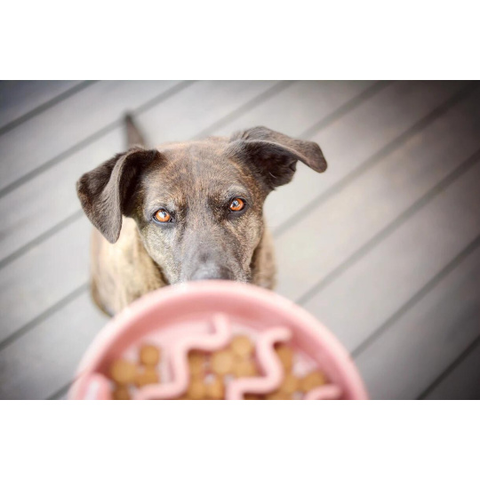 - Fressen ohne Schlingen: Die Erhebungen im Napf regen den Hund dazu an, langsamer zu fressen, was eine bessere Verdauung fördert.