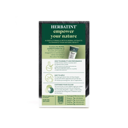 Die Farbe verleiht dem Haar eine intensive Farbe und Glanz. Das Haar sieht frisch aus, ist regeneriert, seidig glatt und gestärkt. Dank der gelartigen Konsistenz lässt sich die Farbe sehr einfach auftragen und ist völlig geruchlos. Der gesamte Färbeprozess dauert nicht länger als 40 Minuten. Außerdem testet Herbatint seine Produkte nicht an Tieren und ist auch für Veganer geeignet. Auf unserem Blog können Sie sich die Farbkarte aller Farben ansehen, die wir im E-Shop anbieten. Vergessen Sie nicht, dass die resultierende Farbe nach dem Färben nicht immer mit der Farbe auf der Verpackung übereinstimmen muss. Es hängt von der ursprünglichen Haarfarbe ab, dem genetisch bedingten Pigment in der Struktur Ihres Haares, das sich möglicherweise nicht in der natürlichen Haarfarbe zeigt, aber einige Herbatint-Farben können es hervorheben; außerdem von Ihrer aktuellen Farbe (d.h. welche Farbe vor Herbatint aufgetragen wurde), oder ob Sie Nachwuchs, graue Haare oder Strähnchen haben.