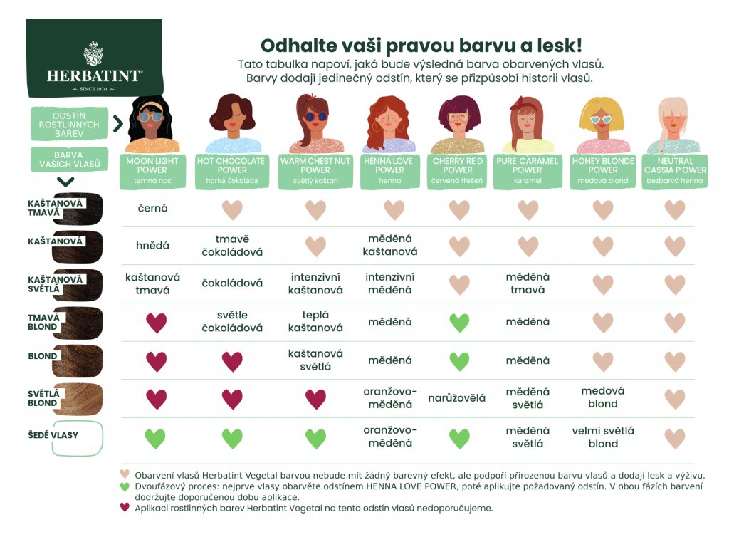 Dank der feinen Mikropartikel der ayurvedischen Pflanzenpulver können Sie ein luxuriöses Färbeerlebnis direkt bei Ihnen zu Hause genießen. Die Farbe lässt sich leicht mischen, einfach auftragen und verteilen. Die Haarfarbe ist nach der Anwendung intensiv und aufhellend, das Haar und die Kopfhaut sind genährt und die Haarfaser ist erneuert und versiegelt. Den richtigen Farbton wählen Sie ganz einfach aus, es ist nicht nötig, den gewünschten Farbton kompliziert zu mischen. Herbatint bietet acht Nuancen von bereits gemischten und ausgewogenen Farben an, um Ihnen das intensivste Ergebnis zu bieten. Falls Sie sich dennoch unsicher sind, finden Sie im Artikel in unserem Beauty-Magazin alle notwendigen Informationen, einschließlich der Farbkarte.