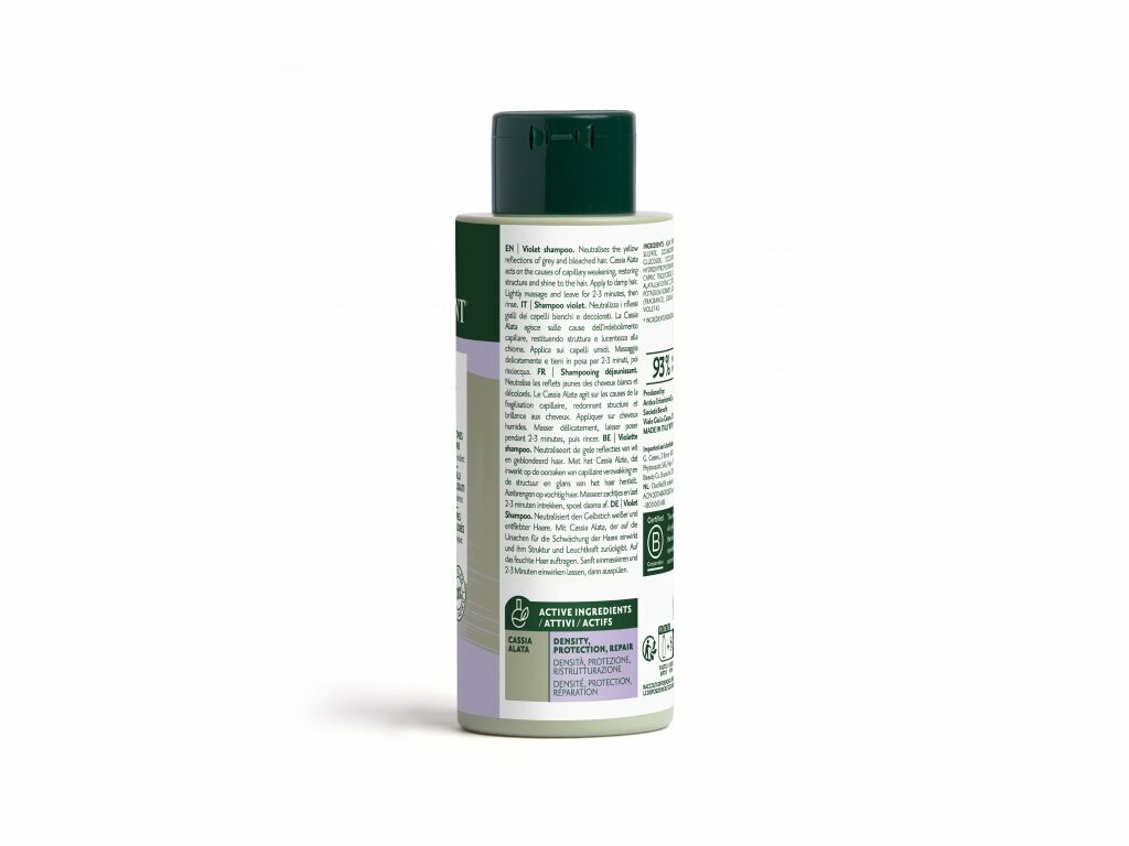 Violette Pigmente in der Zusammensetzung dieses Shampoos reduzieren gelbe Reflexe mit einem stärkeren Effekt bei jeder weiteren Anwendung.