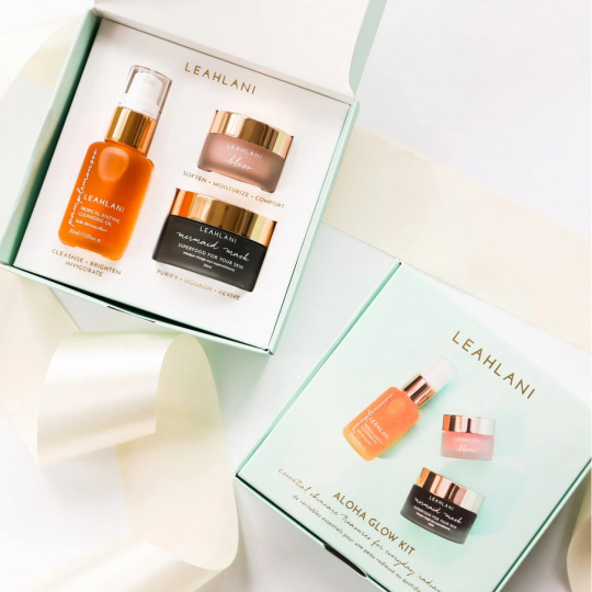 Luxuriöses dreistufiges Schönheitsritual mit Mini-Versionen der beliebtesten Produkte von Leahlani in der Hautpflege.