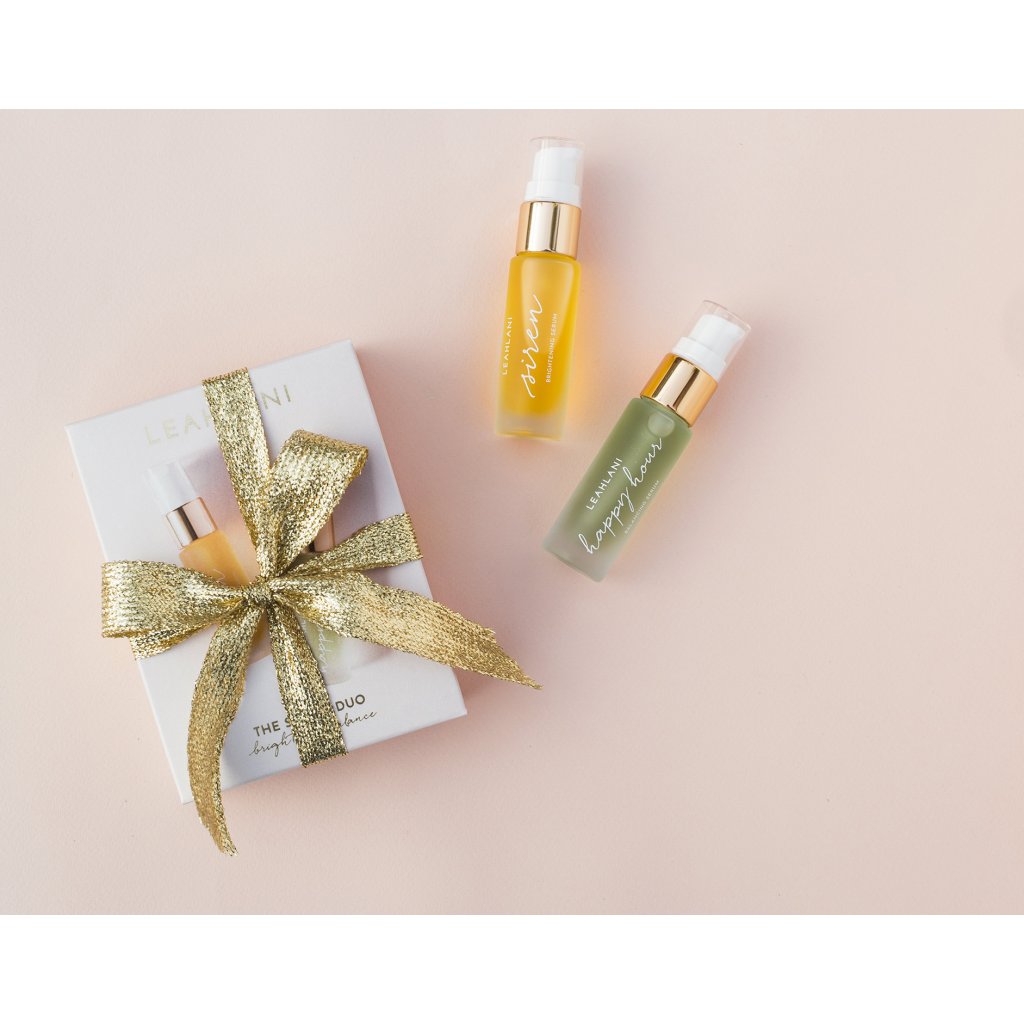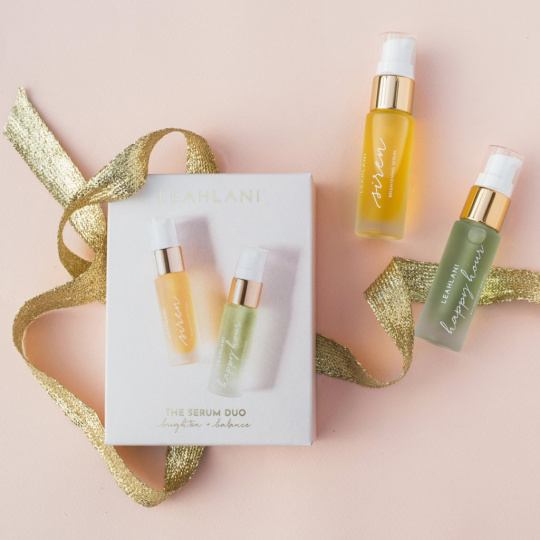 Das wunderschöne Serum Duo Set kombiniert das aufhellende Siren Serum mit dem ausgleichenden Happy Hour Duo Serum. Das Set ist geeignet für alle Liebhaberinnen der Leahlani-Kosmetik, auch für diejenigen, die die Produkte erst ausprobieren möchten. Aufhellendes und ausgleichendes Serum im 2 x 15 ml Pack ist ideal für Reisen. Produkte von Leahlani Skincare werden frisch in kleinen Chargen aus hochwertigen, organischen, wild wachsenden Pflanzen und lokalen hawaiianischen Zutaten hergestellt. Sie sind 100% frei von chemischen Bestandteilen, synthetischen Farbstoffen und Duftstoffen, selbstverständlich werden alle Produkte nicht an Tieren getestet.