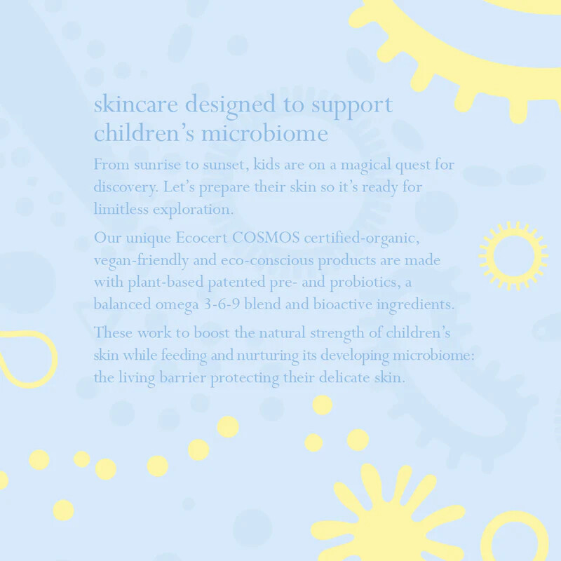 Waschen Sie das ganztägige Spielen mit unseren 100% natürlichen, klinisch getesteten, umweltfreundlichen und mikrobenfreundlichen schäumenden Badeblasen KIDS mit Ecocert Cosmos-Zertifikat (ab 3 Jahren) ab.