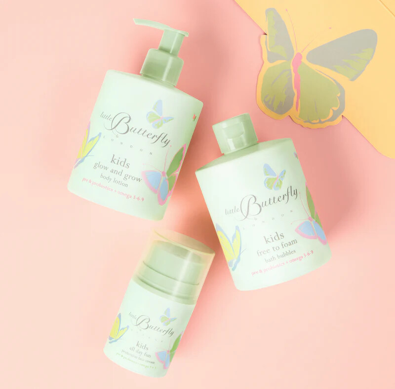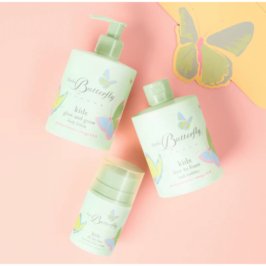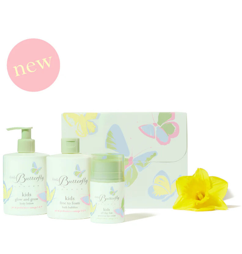 Bereiten Sie junge Haut auf zauberhafte Reisen mit unseren zwei unverzichtbaren Hautpflegeprodukten für Kinder vor - alles verpackt in einer lustigen Geschenkbox mit Schmetterling, die Ihnen ein Lächeln ins Gesicht zaubert.