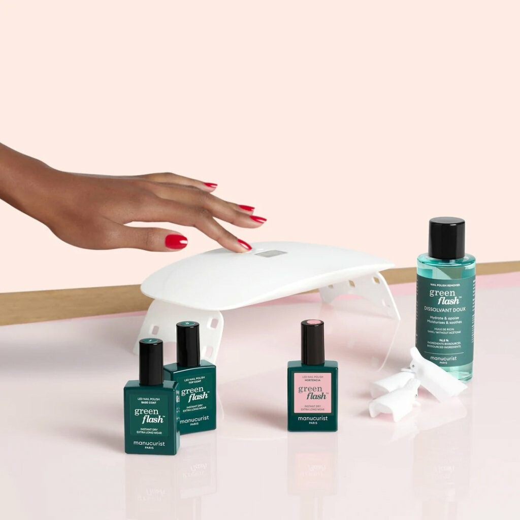 Tragbare faltbare LED-Lampe, die überall verstaut und mitgenommen werden kann, mit einer Leistung von 24 W für die Erstellung einer modernen Maniküre zu Hause mit Green Flash Gel-Lacken. Der gesamte Prozess dauert nicht länger als nur 30 Minuten!