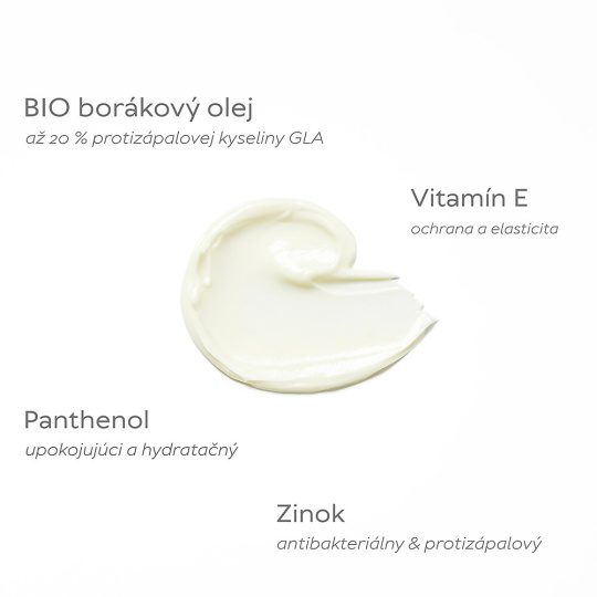 Durch die Kombination von Aloe Vera, Borretschöl, Zink und anderen wertvollen Substanzen entstand ein außerordentlich wirksamer Balsam, der die Haut sofort beruhigt, wenn sie spannt, juckt und brennt. Der Balsam hat wirklich langanhaltende feuchtigkeitsspendende Wirkungen und die Haut wird durch seine Anwendung elastischer und gesünder.
