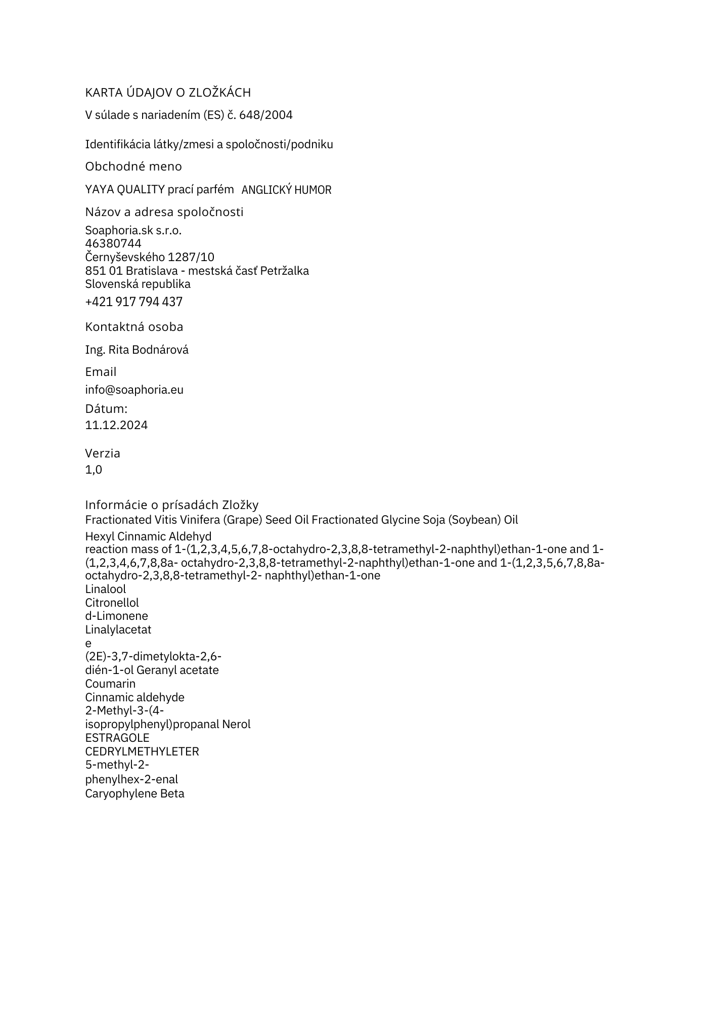 Soaphoria.sk s.r.o., Černyševského 10 851 01 Bratislava, Slovensko, info@soaphoria.eu