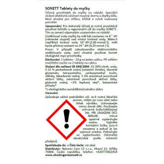 Wirksames Mittel für die Spülmaschine. Die spezielle Zusammensetzung entfernt effektiv Fettflecken und Speisereste. Die SONETT-Tabletten enthalten mineralische Stoffe und biologisch vollständig abbaubare organische Komponenten. Enthalten keine Enzyme, aggressive Bleichmittel mit Chlor, Phosphate oder Duftstoffe.