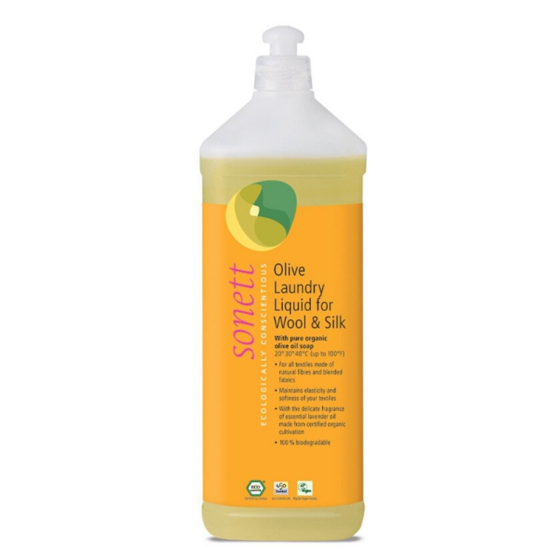 Produkt für Wolle, Seide und feine Fasern für Handwäsche und Maschinenwäsche bei niedrigeren Temperaturen bis zu 40°C.Hochwertiges kaltgepresstes Olivenöl wird in diesem Produkt zu einer Seife verarbeitet, die hervorragende Reinigungs-, Pflege- und rückfettende Eigenschaften für Textilien aus Wolle und Seide hat. Mit Hilfe eines Zuckertensids entsteht ein mildes Waschmittel auf Seifenbasis; dieses Mittel ist auch bei hartem Wasser leicht anwendbar und behält alle positiven Eigenschaften bei. Die gesamte Verpackung ist recycelbar