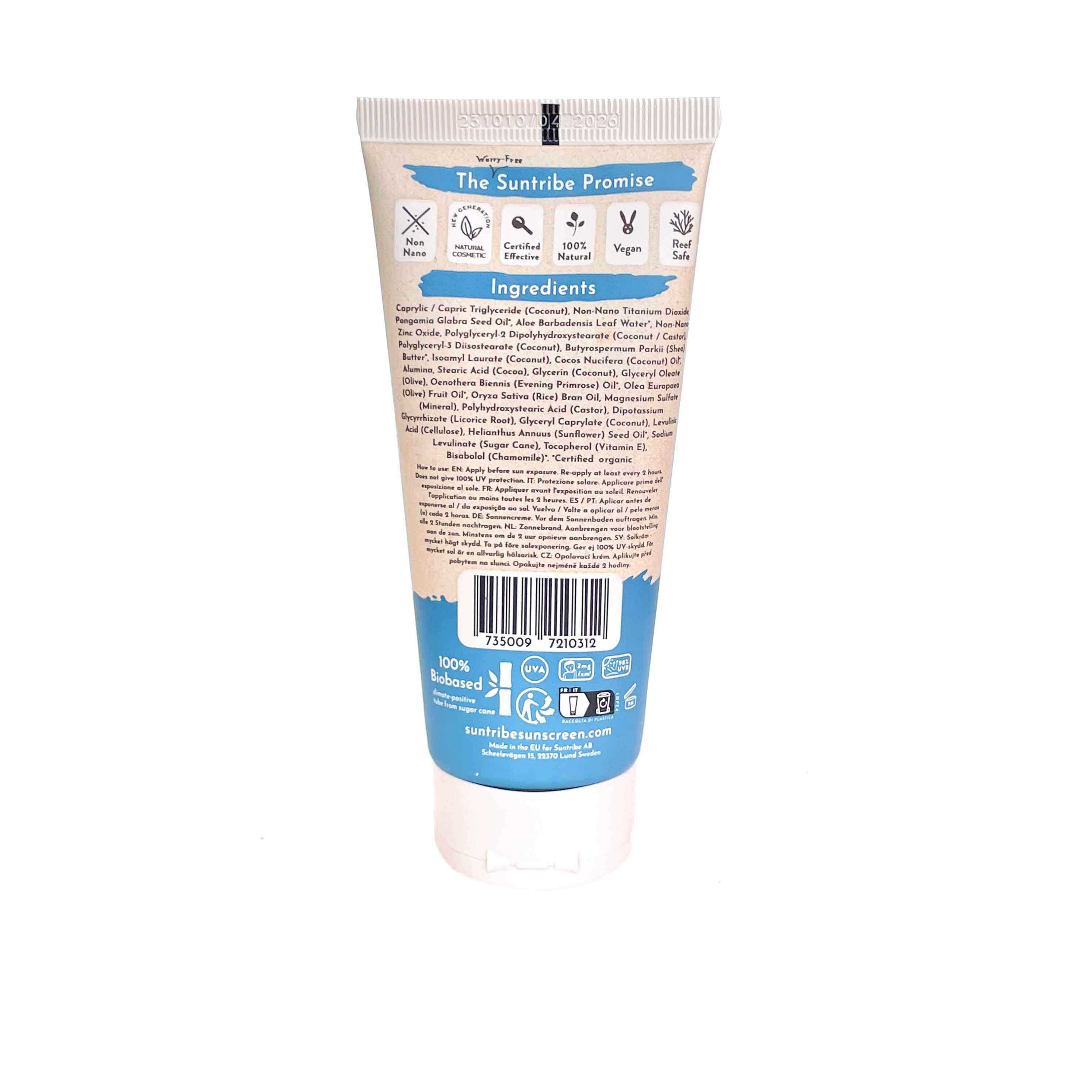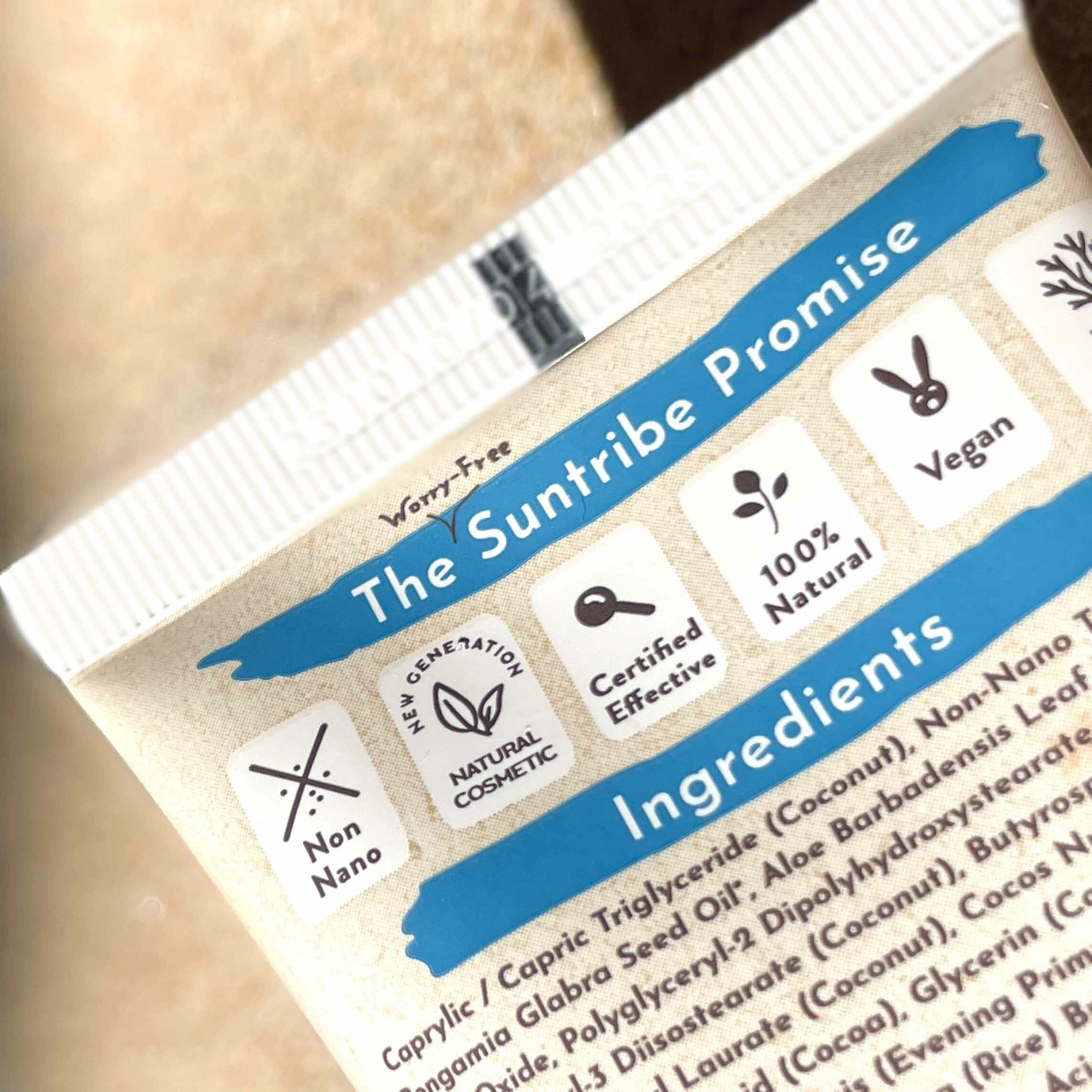 Caprylic / Capric Triglyceride (Kokosnuss), Nicht-Nano-Titandioxid, Pongamia Glabra Samenöl°, Aloe Barbadensis Blattwasser°, Nicht-Nano-Zinkoxid, Polyglyceryl-2 Dipolyhydroxystearat (Kokosnuss / Rizinus), Polyglyceryl-3 Diisostearat (Kokosnuss), Butyrospermum Parkii (Shea) Butter°, Isoamyl Laurat (Kokosnuss), Cocos Nucifera (Kokosnuss) Öl°, Aluminiumoxid, Stearinsäure (Kakao), Glycerin (Kokosnuss), Glyceryl Oleat (Olive), Oenothera Biennis (Nachtkerze) Öl°, Olea Europaea (Oliven) Fruchtöl°, Oryza Sativa (Reis) Kleieöl, Magnesiumsulfat (Mineral), Polyhydroxystearinsäure (Rizinus), Dipotassium Glycyrrhizate (Süßholzwurzel), Glyceryl Caprylat (Kokosnuss), Levulinsäure (Cellulose), Helianthus Annuus (Sonnenblume) Samenöl°, Natriumlevulinate (Zuckerrohr), Tocopherol (Vitamin E), Bisabolol (Kamille)°. °Zertifiziert biologisch