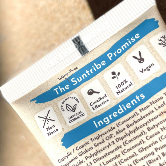 Sonnencreme enthält einen mineralischen UV-Filter (nicht-nano Zinkoxidpartikel), der laut Forschung der sicherste UV-Filter für die Gesundheit von Menschen, Korallen und der Unterwasserwelt ist.