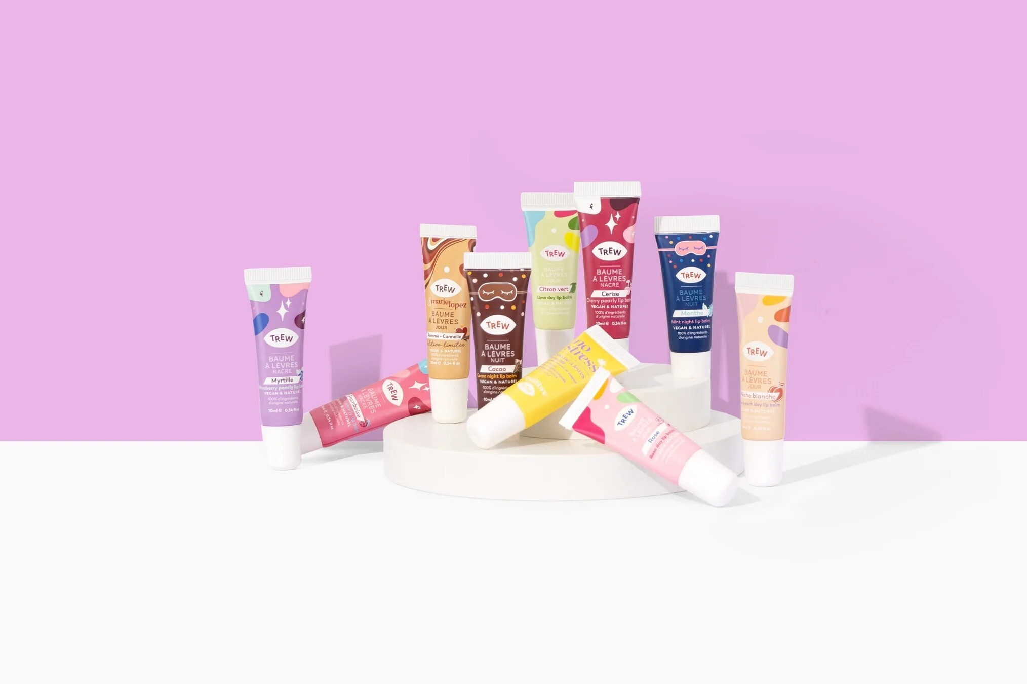 Fröhlich bunte Verpackungen, verlockende Düfte und vor allem eine natürliche Zusammensetzung, die Ihre Lippen verwöhnt – das sind die französischen Balsame Trew. Kleine Begleiter, die in jede Handtasche und jede Tasche passen, sind bereit, jeden Tag aufzuheitern. Einmal die Lippen auftragen und Sie werden nichts anderes mehr wollen.